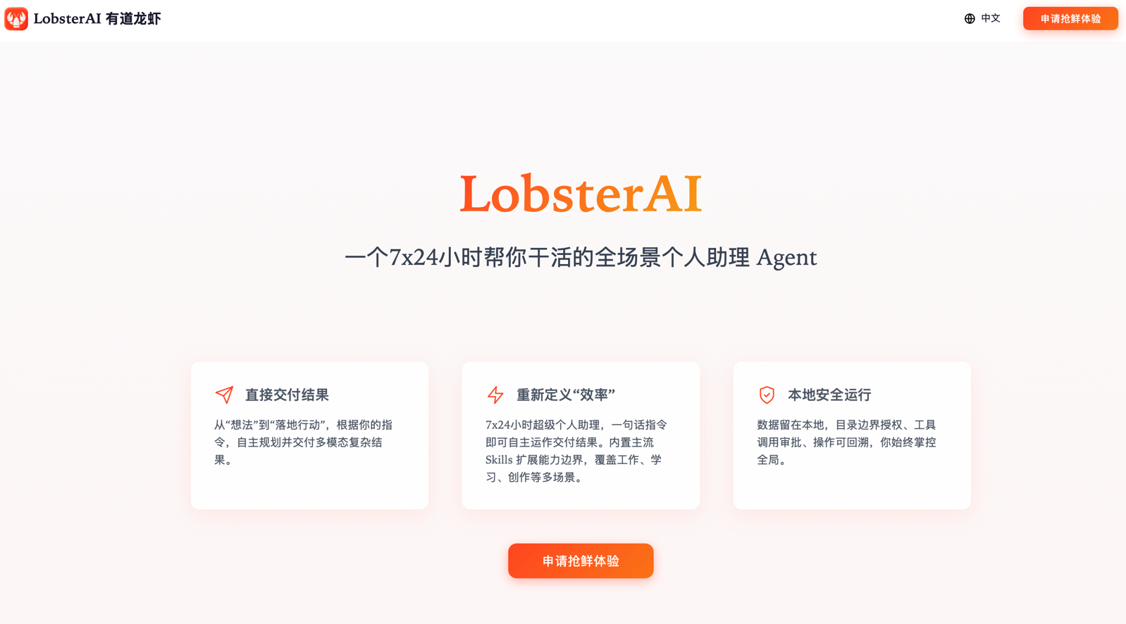 随着AI从“能聊天”迈向“能办事”的Agent(智能体)阶段,个人AI Agent已成为科技行业公认的下一波浪潮。2月11日,记者获悉,网易有道正式推出桌面级Agent“LobsterAI”(中文名:有道龙虾)。据悉,这是一款定位为“7×24 小时帮你干活的全场景个人助理Agent”,目前已在官网开放内测申请。