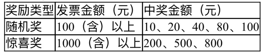 备注:未获得“惊喜奖”的发票将自动参与“随机奖”抽奖。